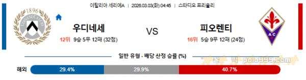 2026-03-03 04:45 세리에 A 우디네세 칼초 ACF 피오렌티나