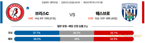 2026-03-22 00:00 잉글랜드 챔피언쉽 브리스톨 시티 FC 웨스트 브로미치 앨비언