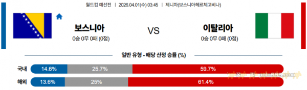 2026-04-01 03:45 월드컵 예선전 보스니아 헤르체고비나 이탈리아