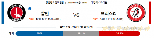 2026-04-03 23:00 잉글랜드 챔피언쉽 찰튼 vs 브리스톨 시티 FC > 축구픽게시판