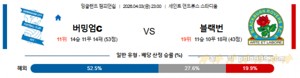 2026-04-03 23:00 잉글랜드 챔피언쉽 버밍엄시티 vs 블랙번 로버스