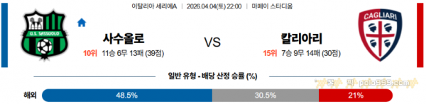 2026-04-04 22:00 세리에 A 사수올로 칼리아리 칼초