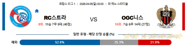 2026-04-05 00:00 리그앙 RC 스트라스부르 vs OGC 니스 > 축구픽게시판