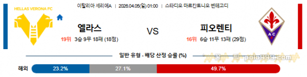 2026-04-05 01:00 세리에 A 엘라스 베로나 FC vs ACF 피오렌티나