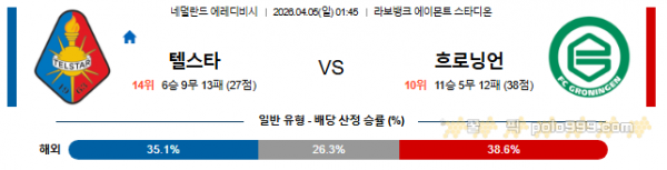 2026-04-05 01:45 에레디비지 텔스타 vs FC 흐로닝언