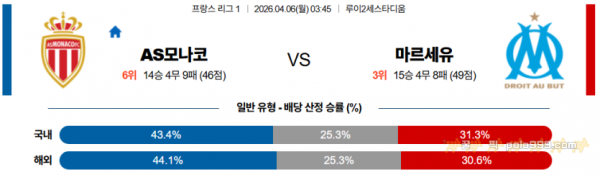 2026-04-06 03:45 리그앙 AS 모나코 올림피크 마르세유 > 축구픽게시판