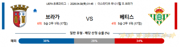 2026-04-09 04:00 UEFA 유로파리그 SC 브라가 vs 레알 베티스