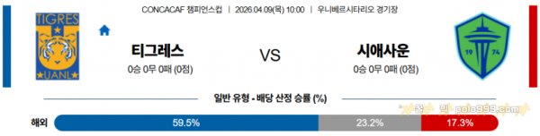 2026-04-09 10:00 CONCACAF 챔피언스컵 티그레스 시애틀 사운더스 FC