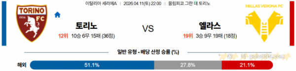 2026-04-11 22:00 세리에 A 토리노 FC 엘라스 베로나 FC