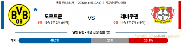 2026-04-11 22:30 분데스리가 보루시아 도르트문트 레버쿠젠