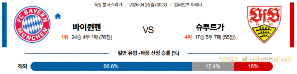 2026-04-20 00:30 분데스리가 바이에른 뮌헨 VfB 슈투트가르트
