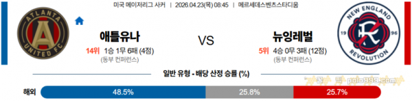 결국 이번 매치는 후방 빌드업 안정감보다 전방 압박의 날카로움에서 앞설 애틀랜타 승리 쪽으로 무게가 실린다.