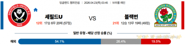 2026-04-23 03:45 잉글랜드 챔피언쉽 셰필드 유나이티드 블랙번 로버스