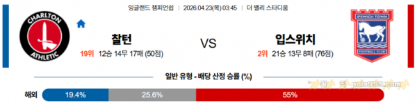 2026-04-23 03:45 잉글랜드 챔피언쉽 찰튼 입스위치 타운