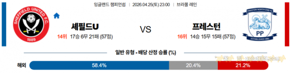 2026-04-25 23:00 잉글랜드 챔피언쉽 셰필드 유나이티드 프레스턴 노스 엔드