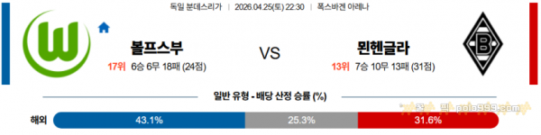 2026-04-25 22:30 분데스리가 VfL 볼프스부르크 묀헨글라트바흐