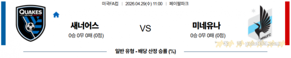 2026-04-29 11:00 미국 FA컵 산호세 어스퀘이크 미네소타 유나이티드 FC