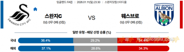 2026-01-11 23:30 잉글랜드 FA컵 스완지 시티 웨스트 브로미치 앨비언