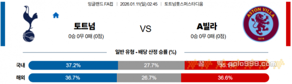 2026-01-11 02:45 잉글랜드 FA컵 토트넘 홋스퍼 애스턴 빌라