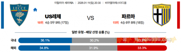 2026-01-11 20:30 세리에 A US 레체 파르마 칼초 1913 > 축구픽게시판