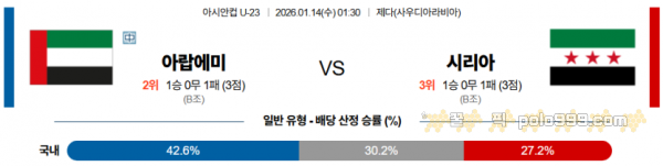 2026-01-14 01:30 U-23 아시안컵 아랍에미리트 시리아
