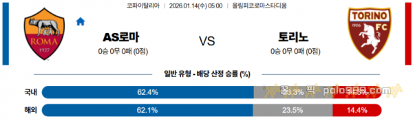 2026-01-14 05:00 수페르코파 이탈리아나 AS 로마 토리노 FC > 축구픽게시판