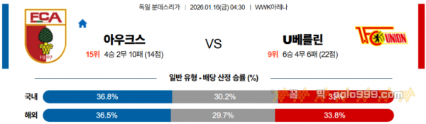 2026-01-16 04:30 분데스리가 아우크스부르크 우니온베를린