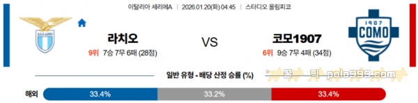 2026-01-20 04:45 세리에 A SS 라치오 코모 1907