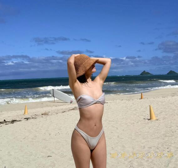 뒤태가 담긴 컷에서는 힙라인과 다리 길이가 강조되며 이러한 착시가 더욱 극대화됐다. 단순한 비키니 노출을 넘어 ‘비율 반전’ 장면으로 이어진 셈이다.