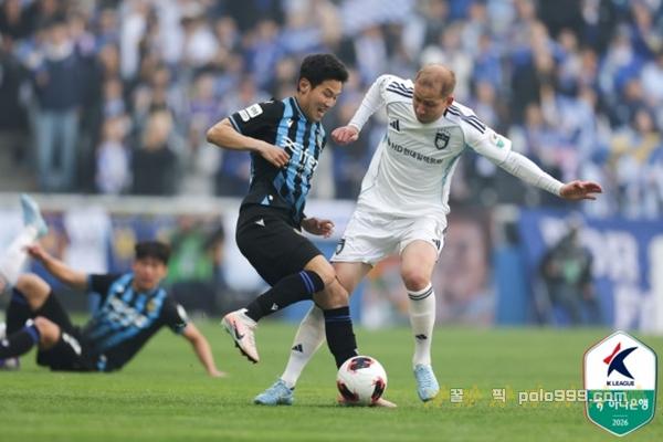 후반 24분 김명순의 박스 안 왼발 감아 차기가 조현우의 선방에 막혔다. 그리고 26분 인천이 드디어 동점골을 터뜨렸다. 박스 안 혼전 상황에서 서재민의 침착한 양발 드리블에 이어 무고사가 오른발 슈팅으로 골망을 갈랐다.