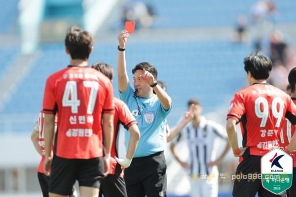 전반 종료 직전 변수가 생겼다. 손정범과 송준석이 충돌했고, 주심은 온 필드 리뷰를 통해 손정범의 어깨 차징과 송준석의 스트라이킹 파울을 확인, 두 선수 모두에게 레드카드를 꺼냈다. 전반은 1-0으로 서울이 앞섰다.