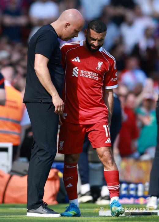 모하메드 살라(리버풀)가 25일(한국시간) 크리스탈 팰리스와의 프리미어리그 34라운드 홈 경기(3-1 승)에서 왼쪽 햄스트링 부상으로 후반 14분 교체됐다. 살라는 도움 없이 걸어 나가며 안필드 관중석을 향해 박수를 보냈다. 아르네 슬롯 감독은 "살라가 경기장을 떠나는 걸 힘들어한다. 부상 정도가 심각한지는 지켜봐야 한다"고 말했다.