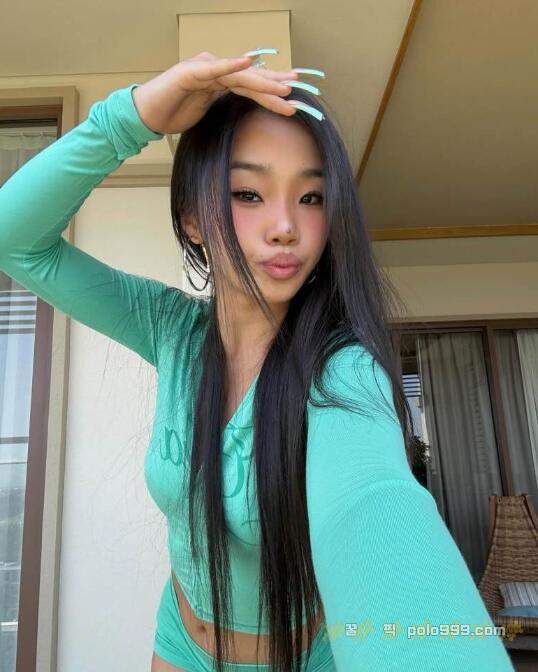 하리무, 옷부터 네일까지 '올 민트 룩'…살짝 보이는 핑크색 끈 '핫걸'
