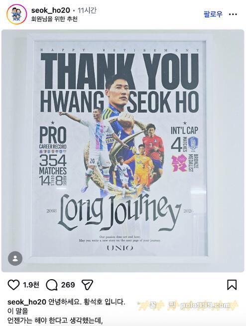 저는 오늘, 축구선수 황석호의 시간을 내려놓으려고 합니다.