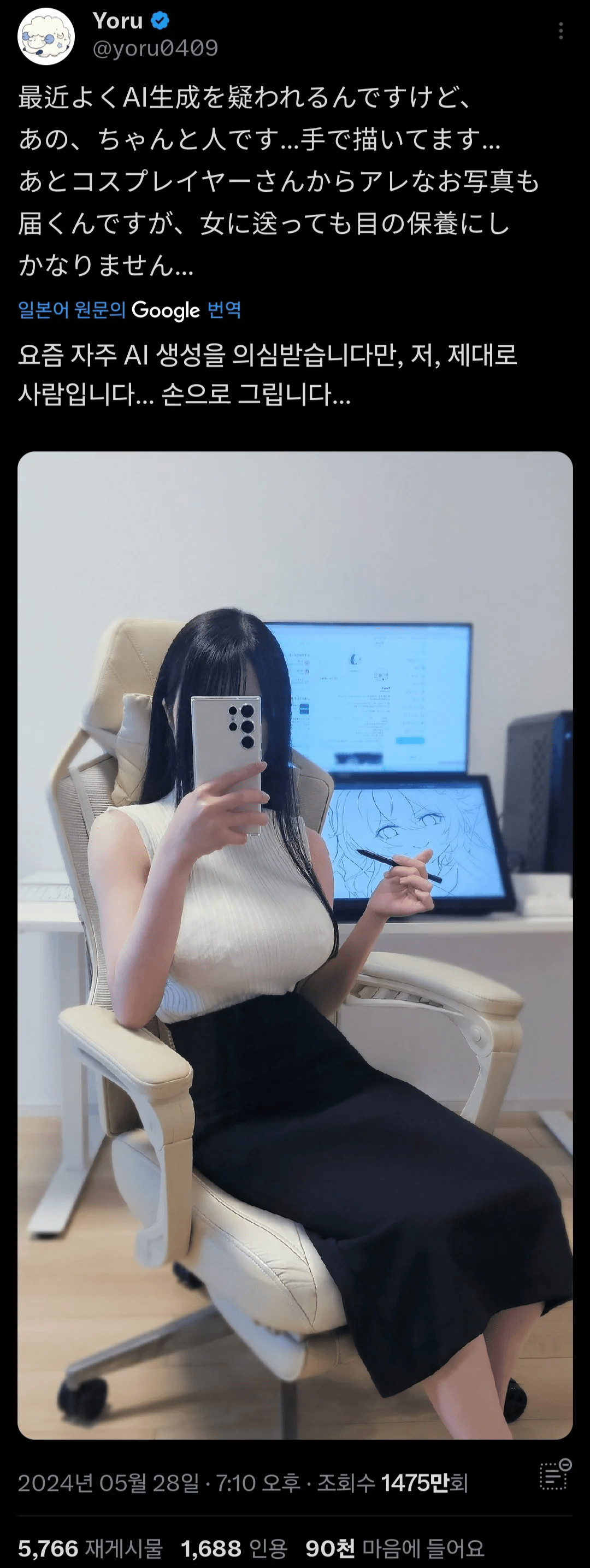 ai로 그린다고 의심 받은 여자 작가의 해명 방법 페이지 정보 작성자 안구정화 댓글 0건 조회 192회 작성일 26-04-01 21:01 목록 본문 ai로 그린다고 의심 받은 여자 작가의 해명 방법 이전글9 26.04.01 다음글이분 남편은 도대체 뭐하는 분일까 궁금 26.04.01 댓글 0 댓글목록 등록된 댓글이 없습니다.