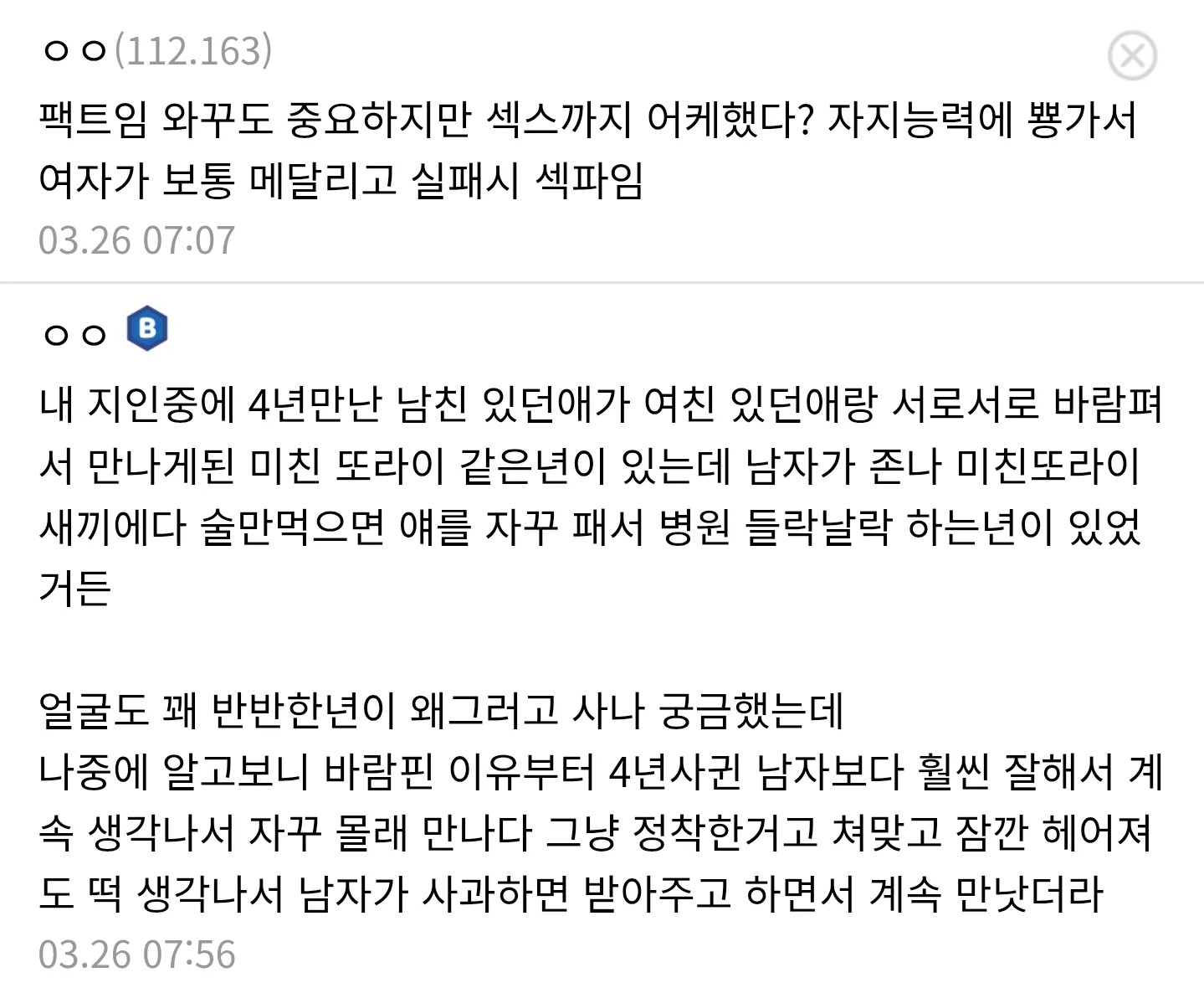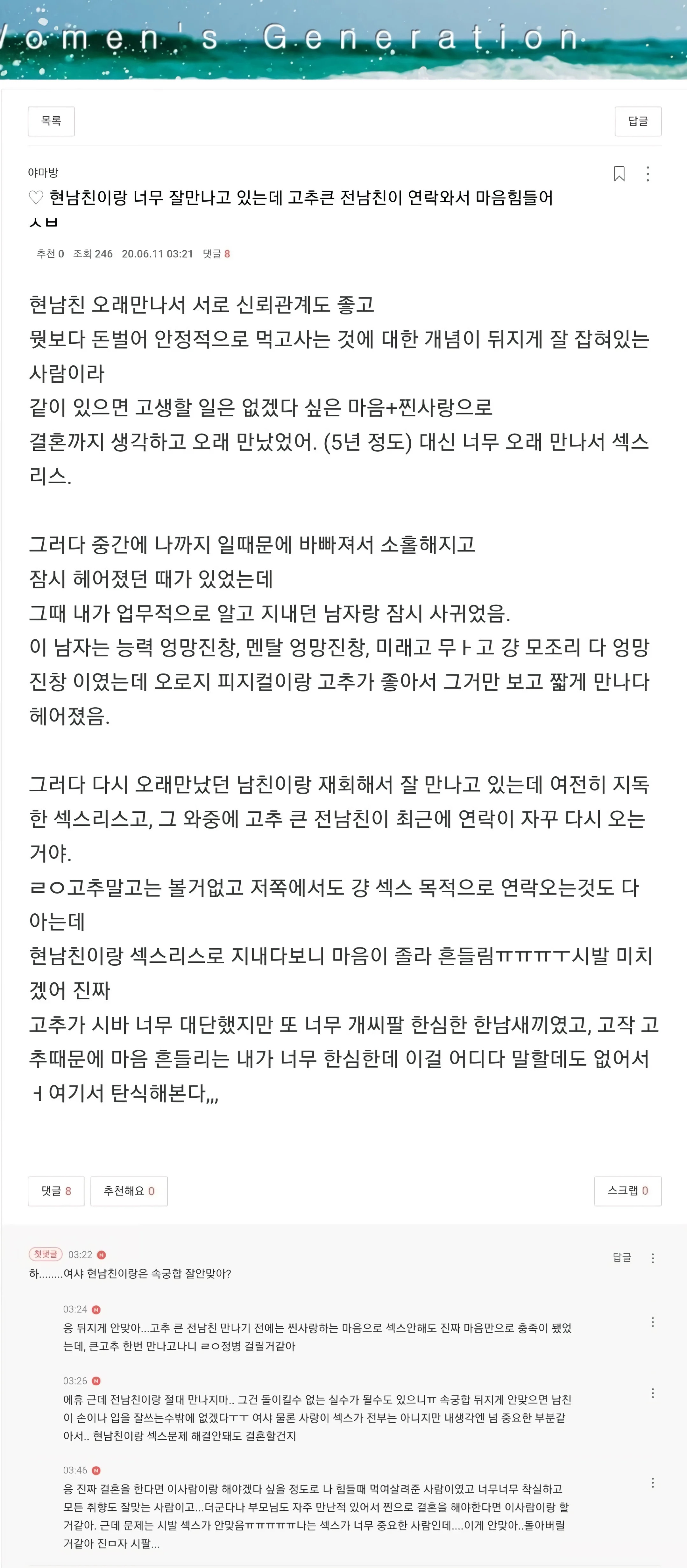 나이가 드니까 알게 되는 이성관계 사실 페이지 정보 작성자 안구정화 작성일 26-04-09 13:32 조회 108 댓글 0 본문 이거진짜에요? 나이가 드니까 알게 되는 이성관계 사실 이전글 16 다음글 여군 하사와 폭풍섹스한 썰 댓글목록 0 등록된 댓글이 없습니다.