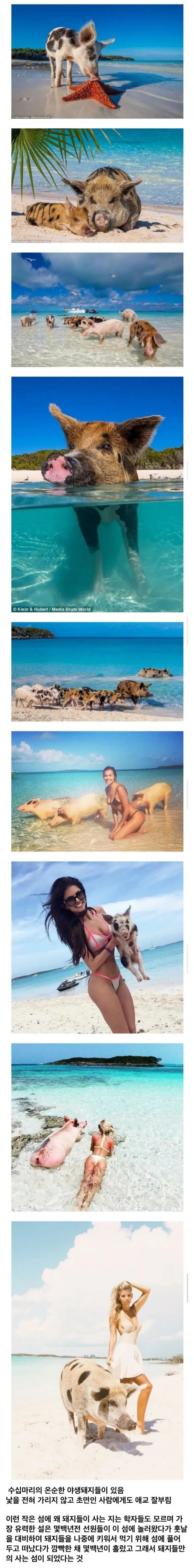 돼지섬(Pig Island). 바하마의 대표 관광지 중 하나인 돼지섬은