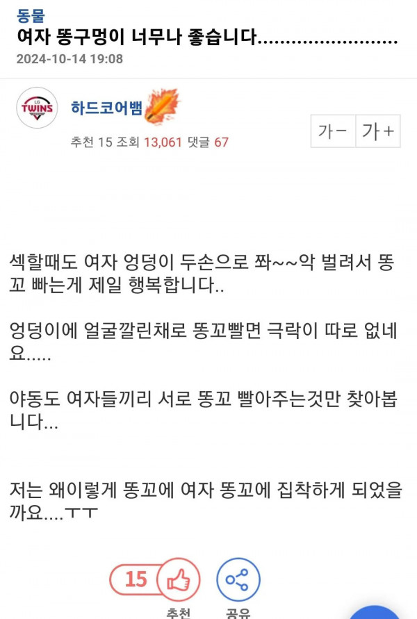 특이한 성적 취향을 가진 아재 페이지 정보 작성자 안구정화 작성일 26-03-27 20:41 조회 165 댓글 0 본문 만약 아래와 같이 남자 똥꼬 냄새 좋아하는 여자랑 만나시면 진짜 천생연분일듯 남녀가 서로의 똥꼬 냄새를 좋아하는 그런 부부 특이한 성적 취향을 가진 아재 이전글 7 다음글 AV배우가 입었던 비키니 경매 댓글목록 0 등록된 댓글이 없습니다.