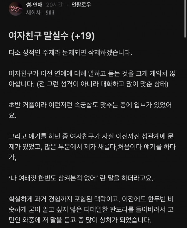 19) 성관계 중 여자친구 말실수 페이지 정보 작성자 안구정화 댓글 0건 조회 153회 작성일 26-02-22 09:47 목록 본문 19) 성관계 중 여자친구 말실수 이전글6 26.02.22 다음글ㅇㅎ) 은근 부담되는 소개팅룩 26.02.22 댓글 0 댓글목록 등록된 댓글이 없습니다.