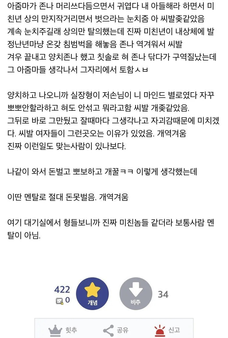여성전용 키스방 알바한 썰 페이지 정보 작성자 안구정화 댓글 0건 조회 136회 작성일 26-03-29 21:20 목록 본문 2014년 최저임금(5,210원) 기준 3배 받는거긴한데.. 여성전용 키스방 알바한 썰 이전글AI가 생각하는 여성스러운 사진 26.03.29 다음글동탄에서는 진짜 미시룩 이렇게 입음? 26.03.29 댓글 0 댓글목록 등록된 댓글이 없습니다.
