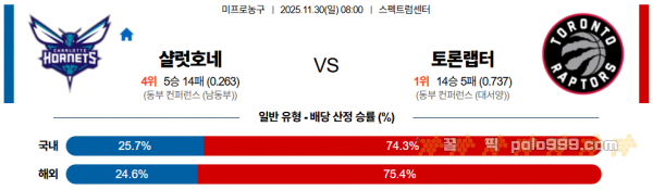 11월 30일 NBA 샬럿호네 vs 토론랩터