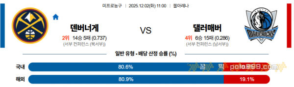 12월 2일 NBA 덴버너게 vs 댈러매버