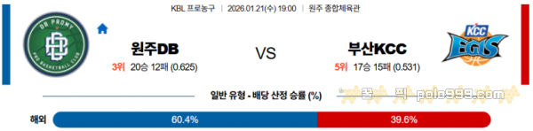 2026-01-21 19:00 KBL 원주 DB 부산 KCC > 농구픽게시판