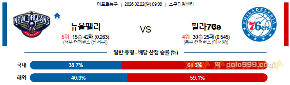 2026-02-22 09:00 NBA 뉴올리언스 펠린컨즈 vs 필라델피아 76ERS 페이지 정보 작성자 꿀픽 댓글 0건 조회 238회 작성일 26-02-21 19:37 목록 답변 글쓰기 본문 이전글2026-02-22 10:00 NBA 마이애미 히트 vs 멤피스 그리즐리즈 26.02.21 다음글2026-02-22 10:00 NBA 샌안토니오 스퍼스 vs 새크라멘토 킹스 26.02.21 댓글 0 댓글목록 등록된 댓글이 없습니다.