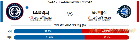 2026-02-23 11:00 NBA LA 클리퍼스 vs 올랜도 매직 페이지 정보 작성자 꿀픽 작성일 26-02-22 17:25 조회 227 댓글 0 본문 이전글 2026-02-23 10:00 NBA 피닉스 선즈 vs 포틀랜드 트레일블레이저 다음글 2026-02-23 19:00 WKBL KB스타즈 vs 하나은행 댓글목록 0 등록된 댓글이 없습니다.