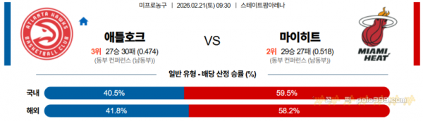 2026-02-21 09:30 NBA 애틀랜타 호크스 마이애미 히트