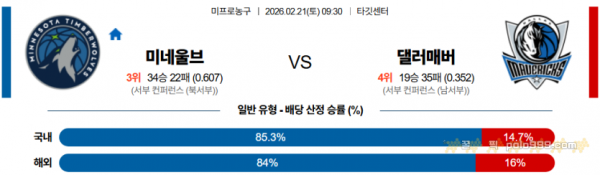 2026-02-21 09:30 NBA 미네소타 울브스 댈러스 매버릭스