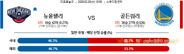 2026-02-25 10:00 NBA 뉴올리언스 펠린컨즈 vs 골든스테이트 워리어스 페이지 정보 작성자 꿀픽 작성일 26-02-25 02:25 조회 235 댓글 0 본문 이전글 2026-02-26 09:30 NBA 디트로이트 피스톤스 vs 오클라호마시티 썬더 다음글 2026-02-25 09:30 NBA 토론토 랩터스 vs 오클라호마시티 썬더 댓글목록 0 등록된 댓글이 없습니다.