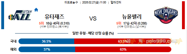 2026-02-27 11:00 NBA 유타 재즈 vs 뉴올리언스 펠린컨즈 페이지 정보 작성자 꿀픽 댓글 0건 조회 155회 작성일 26-02-27 07:17 목록 답변 글쓰기 본문 이전글2026-02-27 10:00 NBA 시카고 불스 vs 포틀랜드 트레일블레이저 26.02.27 다음글2026-02-27 09:30 NBA 올랜도 매직 vs 휴스턴 로켓츠 26.02.27 댓글 0 댓글목록 등록된 댓글이 없습니다.