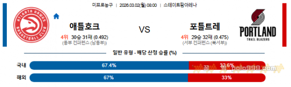 2026-03-02 NBA 애틀랜타 호크스 vs 포틀랜드 트레일블레이저 > 농구픽게시판